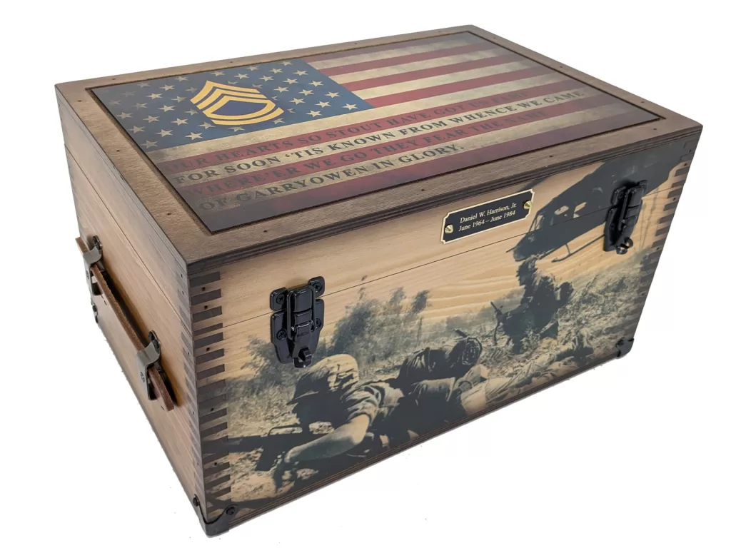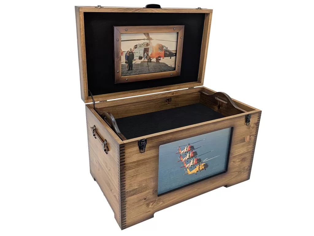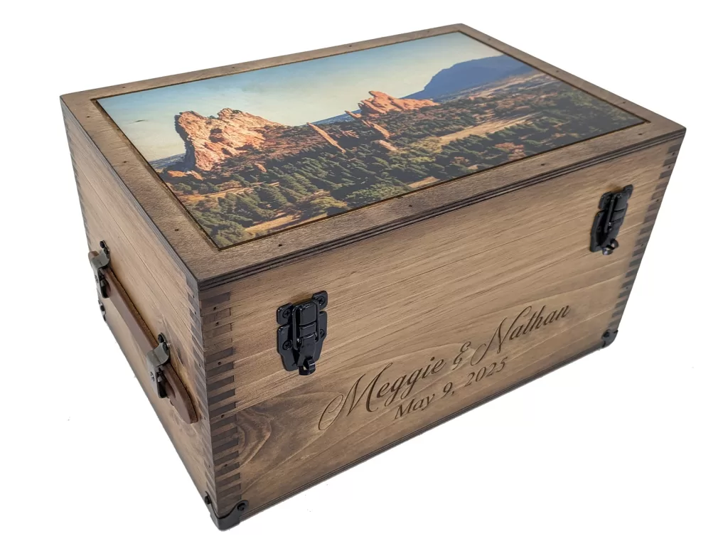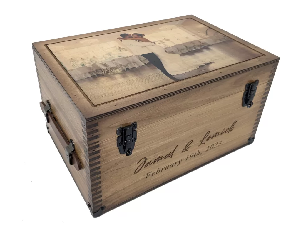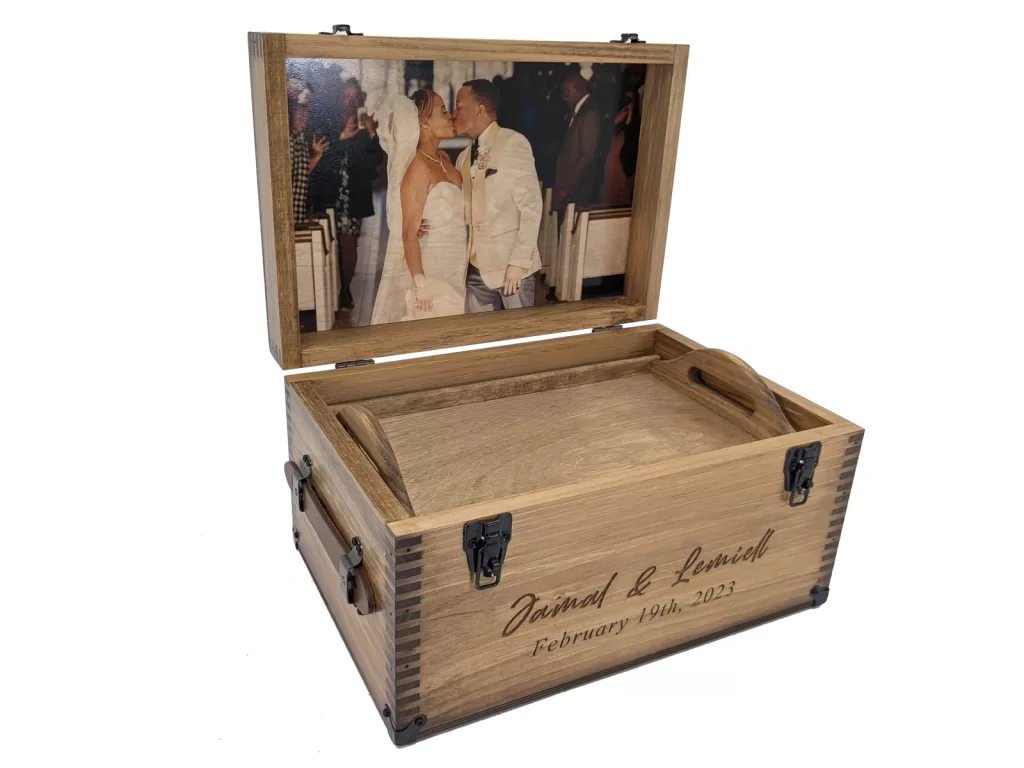 Here at Relic Wood, we make custom gifts for so many different occasions and life events for our customers. Here you will find just a few examples of custom boxes that recently came out of production at our woodworking shop in Taylorsville North Carolina. Big shout out to our on staff graphic artists that work hard to create the personalized designs you see below. No box goes into production without our customers approval of their artwork proofs.