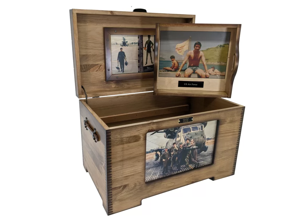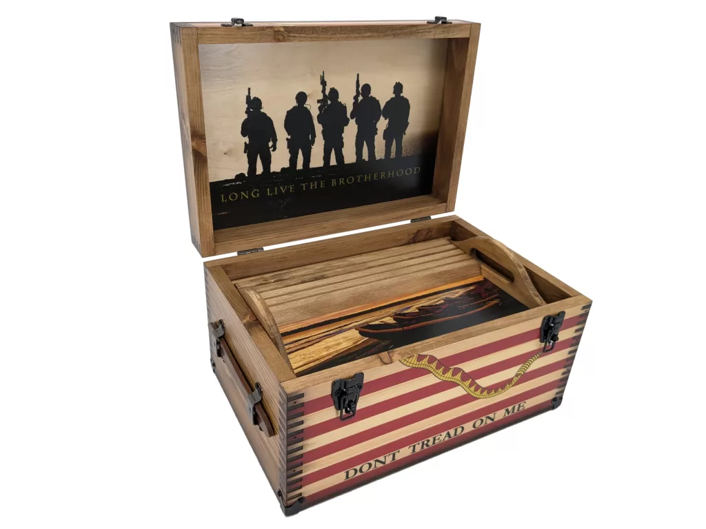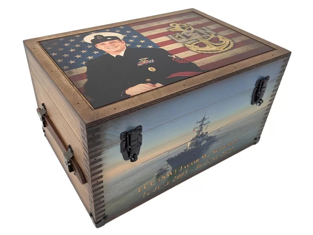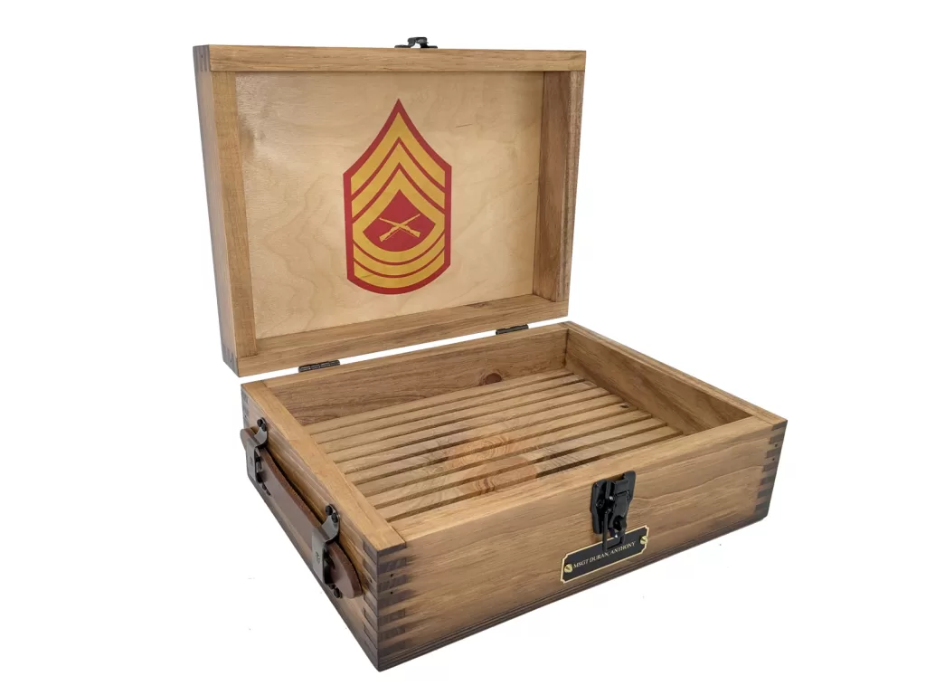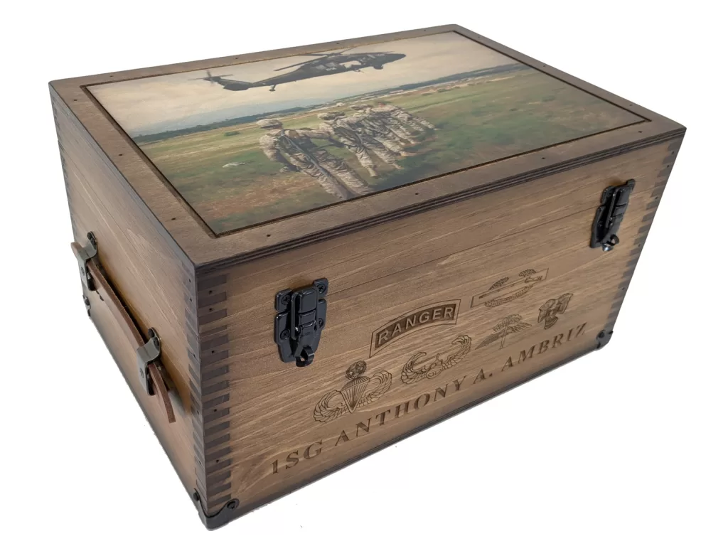 Here at Relic Wood, we make custom gifts for so many different occasions and life events for our customers. Here you will find just a few examples of custom boxes that recently came out of production at our woodworking shop in Taylorsville North Carolina. Big shout out to our on staff graphic artists that work hard to create the personalized designs you see below. No box goes into production without our customers approval of their artwork proofs.