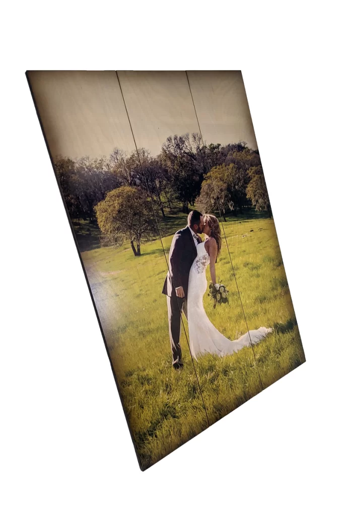 Custom 16″ x 24″ Wedding Photo Pallet Signs – Extraordinary wedding photos can make an amazing statement piece. Do you have great photos of the ceremony? Is it rotting away on some old photo album, phone or hard drive? Set them free and bring them to life on our handcrafted Custom Wedding Photo Pallet Signs. At Relic Wood, we make them Movie Poster Size! Perfect for decorating your own walls at home.