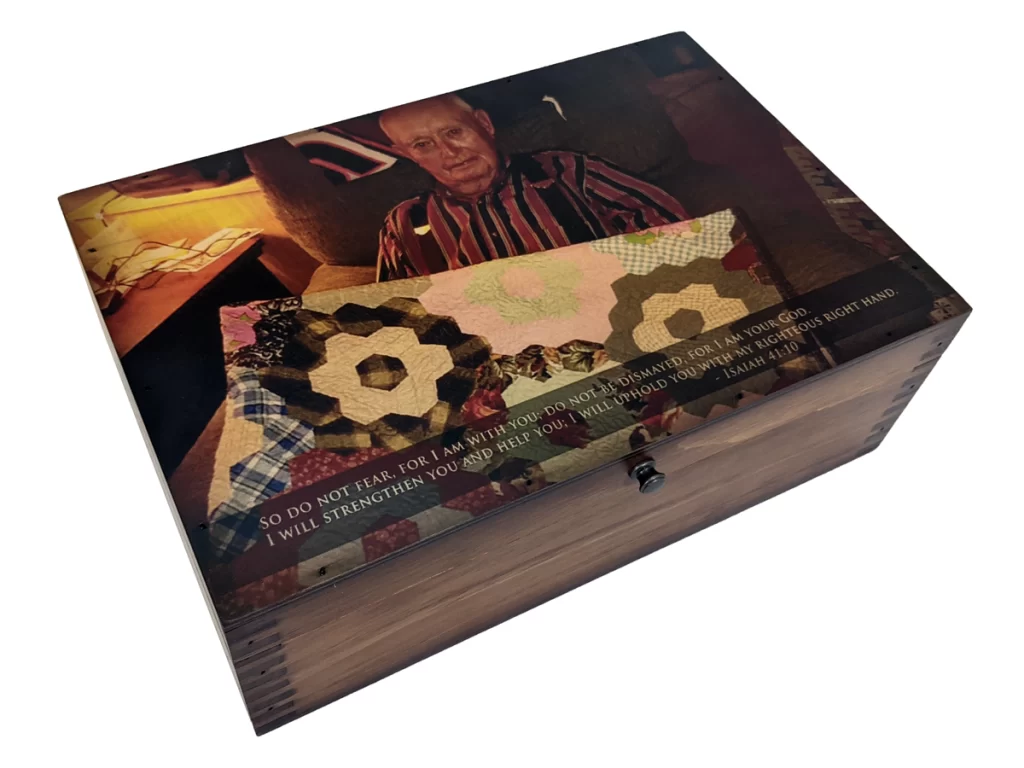 Whether gifted at a memorial service, created in quiet reflection or displayed in a cherished space at home, the Custom In Loving Memory Isaiah 41:10 Memory Box offers both emotional support and heirloom-quality craftsmanship. It’s more than a box—it’s a tribute crafted with dignity, love and lasting meaning.