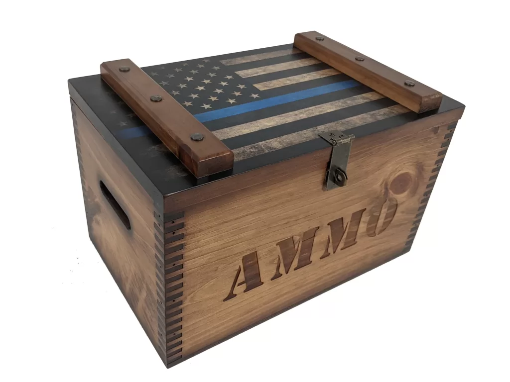 Each ammo box delivers a full-color custom artwork lid featuring your badge, unit logo, or department patch. Personalize further by adding laser-engraved text—such as name, rank or years of service—plus a brass nameplate, felt-lined interior, or internal dividers to organize medals, coins, or service memorabilia. With secure hardware and rugged finishing, this box makes a bold statement and provides the reliability of durable presentation.
