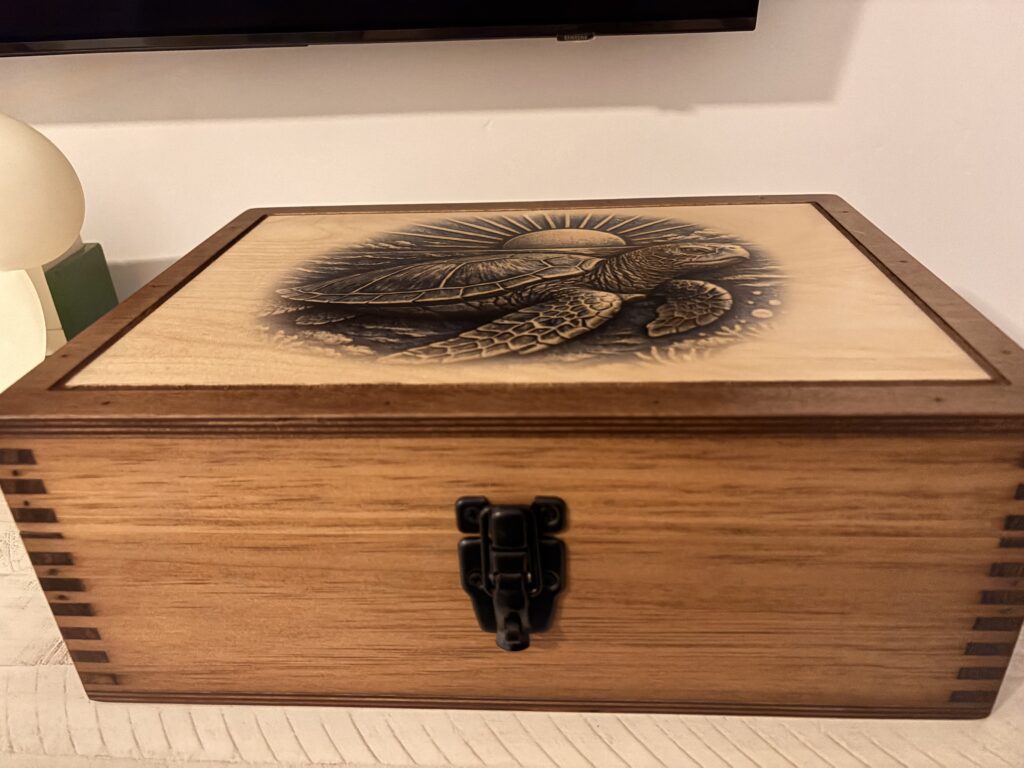 Loved it! It turned out way better than I could have imagined! The box was professionally made and the images looked amazing, even the personalized quote. The hinges and door latch are sturdy and it seem like they will last a very long time. I am glad I found this company