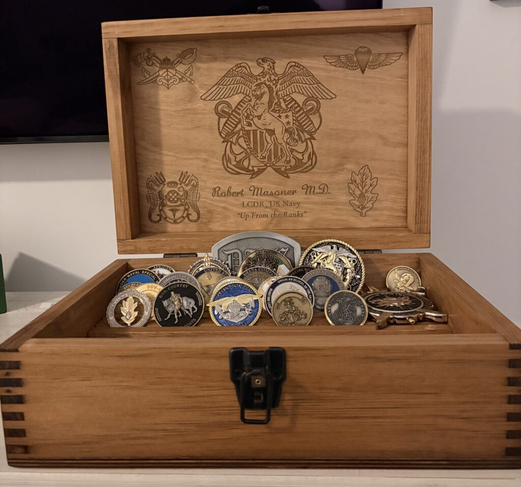 I ordered a custom challenge coin box as a gift for my husband. The pictures I sent were perfect on the outside and inside covers. My husband was thrilled with the box and couldn’t wait to add his coins to the box. Thank you so much for a great product!