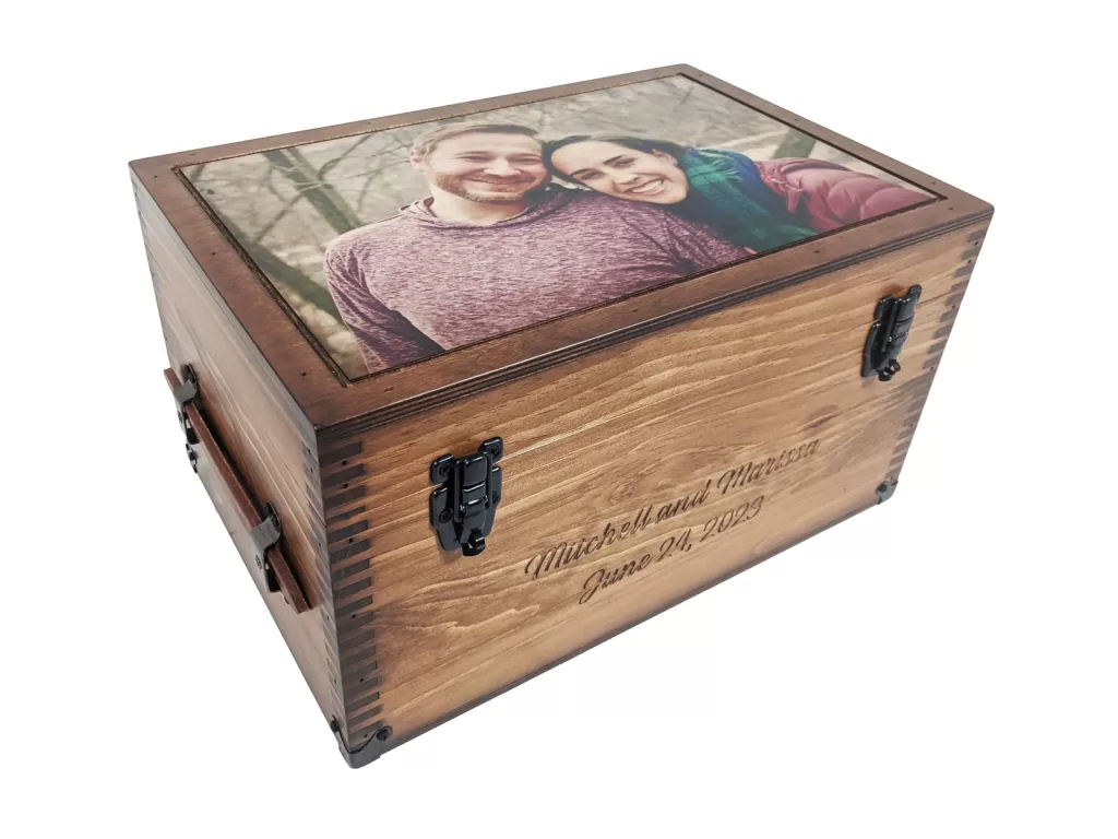 Celebrate the journey of togetherness with the Custom Sweetheart Keepsake Box from Relic Wood. Handcrafted in the USA by a veteran-owned, family-run workshop, this personalized keepsake box is designed to honor the bond between two people with elegance and meaning. You’re in full creative control—choose your favorite image or photo for the lid, add names or a meaningful date, include a favorite quote or motif, then select upgrades like laser-engraved text, a brass nameplate, or a felt-lined interior in the color of your choice.