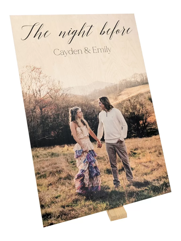 Each wall art piece features premium wood backing with carefully applied printing and finishing for a rich, textured look that elevates your wedding day memory into art. Because it’s handcrafted, the natural wood grain makes every product one-of-a-kind. Whether you’re commemorating your ceremony, celebrating an anniversary, or gifting a newly-wed couple something timeless, this artwork brings elegance, personalization, and legacy into one refined piece.