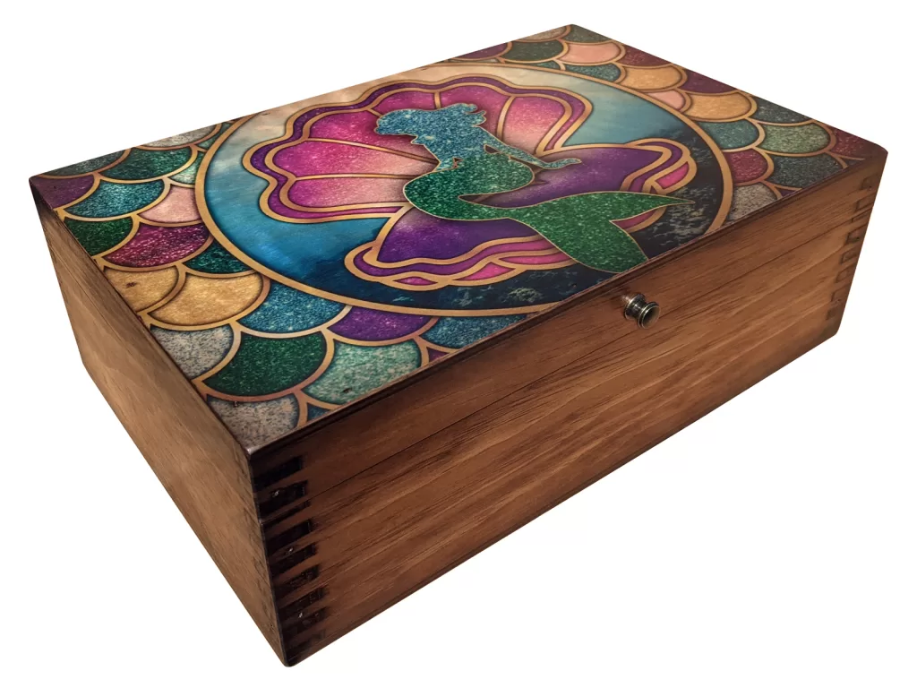 I bought one of your Mermaid Relic Wood boxes as a gift for my wife. She loved it so much she cried..!!