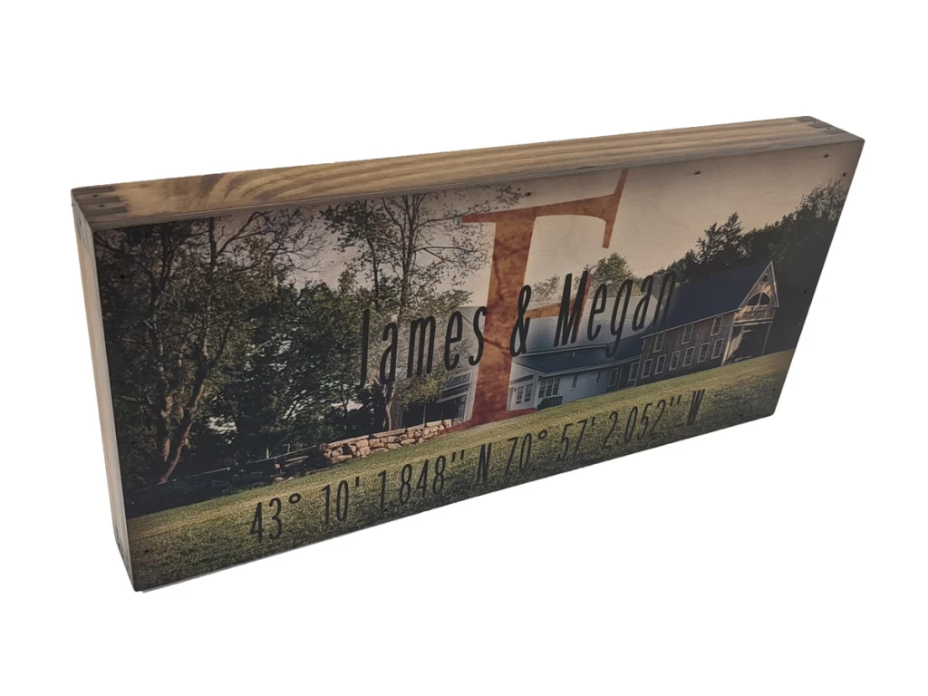 From the moment you begin the design process, you’re in charge. Choose the first names, monogram initial, and location whose coordinates will anchor the piece—be it your first home, favorite vacation spot, wedding venue, or any meaningful place. Work directly with the design team to select artwork placement, font treatments, and optional rustic hardware or nail-head accents to match your décor.