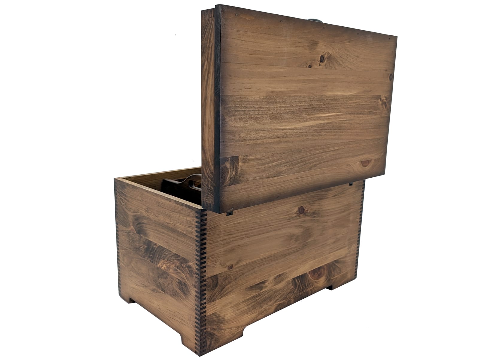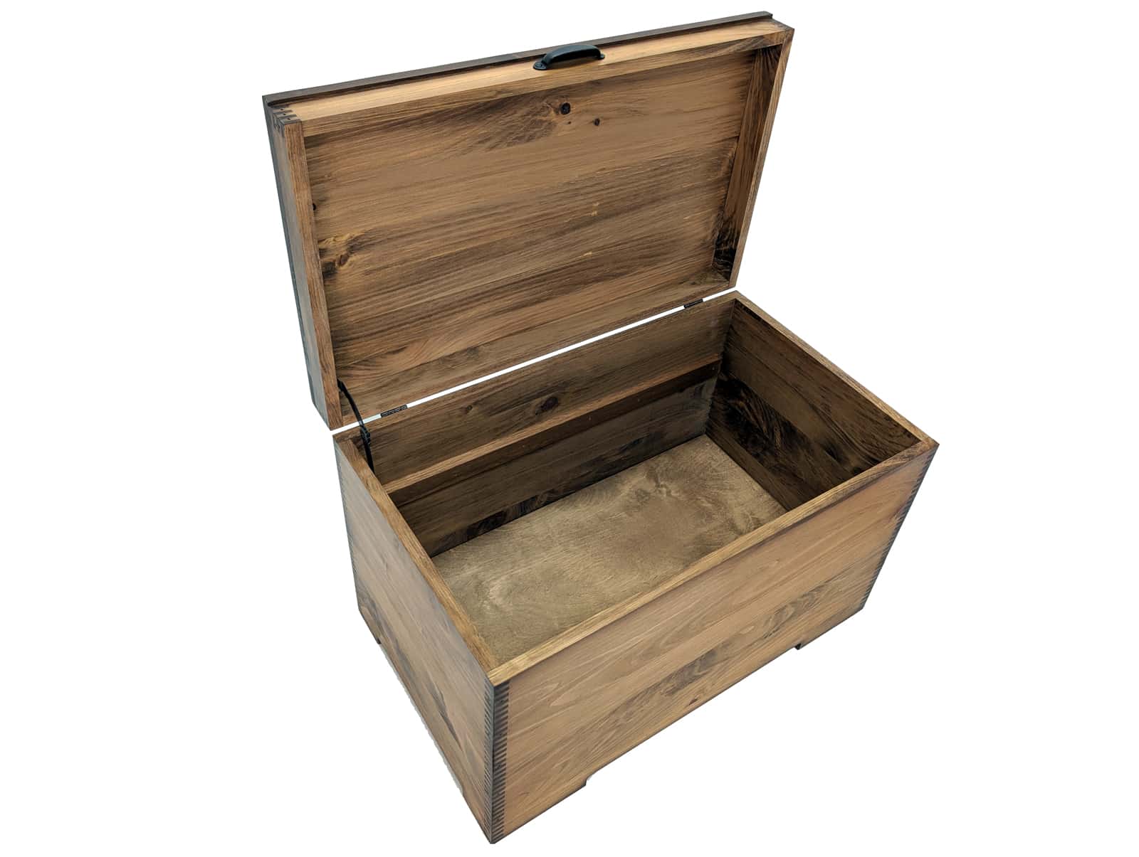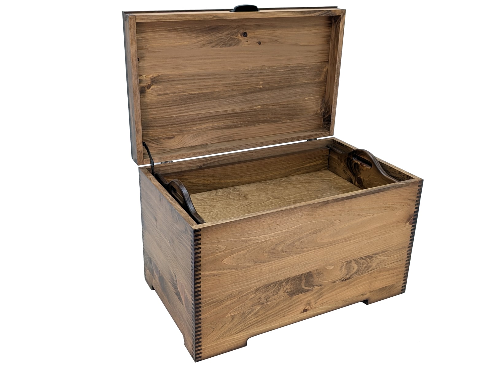 Our Plain Wooden Trunk is an heirloom gift to pass down throughout generations. It comes standard with the hardware as shown. Therefore, you will treasure this Plain Wooden Trunk for a lifetime. Add an Inside Tray to your trunk. You can choose either a full length tray, or go with the half length sliding tray . Felt can also be added to the bottom of it. Your color choices include red, burgundy, royal blue, navy blue, olive green, and black. Lastly, you can add your choice of felt on the Inside Lid, a brass nameplate, or a brass plaque.