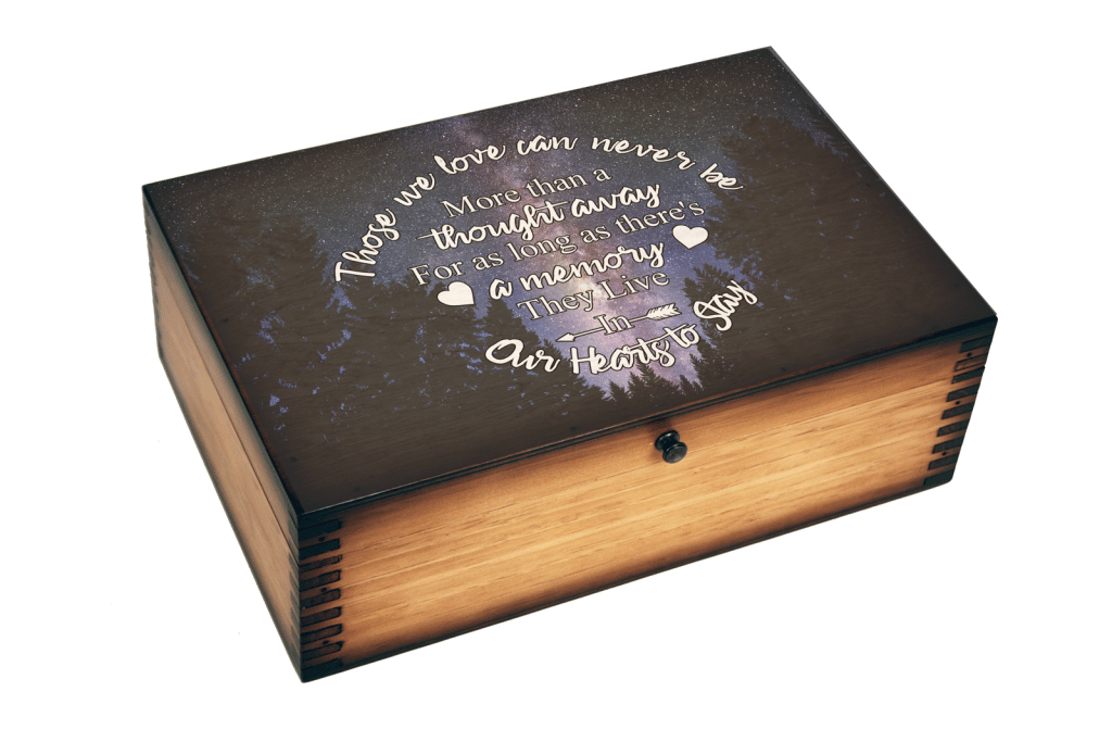 They Live in Our Hearts Memory Box is a beautiful tribute to those loved ones no longer with us. It features a stylish knob and provides a perfect stow away for memorabilia.