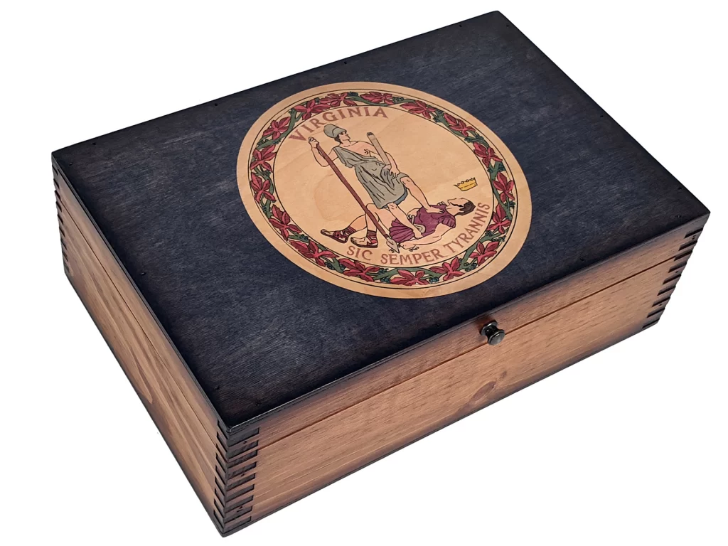 The Virginia State Flag is embedded into the wood then lacquered over top to ensure it resists damage from scratches. We believe our state flag wooden memory boxes are a testament to America’s great history of producing quality products that are meant to last . . . at that is how we still do it today!