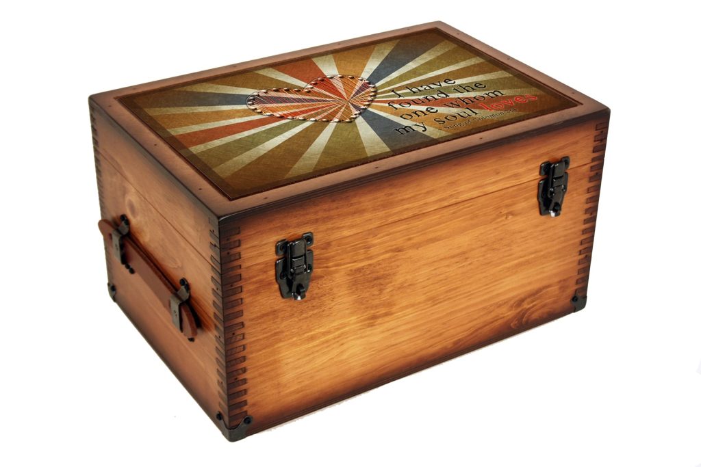 We think this Whom My Soul Loves keepsake box creates the perfect gift for the special someone in your life, and those fascinated with vintage décor and unique in love artwork. Personalize it with a nameplate. Add felt to the inside lid and tray to pin special photos, movie tickets, and other memorable items. Create a perfect stow away for memorabilia.