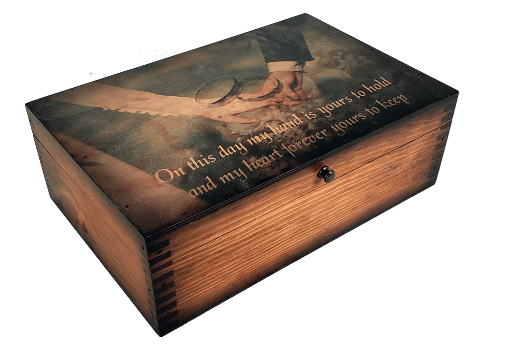 This Yours To Hold Memory Box creates the perfect gift for the special someone in your life as a reminder of their wedding day. Surprise newlyweds with this sentimental gift, or make someone’s day by giving it as an anniversary present. Personalize it with a nameplate, and add felt to the inside lid and inside bottom, to create a perfect stowaway for memorabilia.